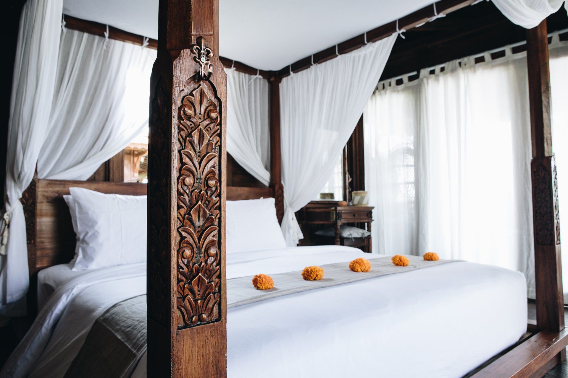 By booking this villa, you will stay in one of the two Wooden Romantic Houses on our resort. These authentic Javanese buildings have been transformed into luxury, well-designed villas with high-quality furniture. All villas at White Tortoise Eco Villas have private ensuite bathrooms, with hot water showers, a sink, and a toilet. The bedroom has a king-sized bed and is equipped with air-conditioning.